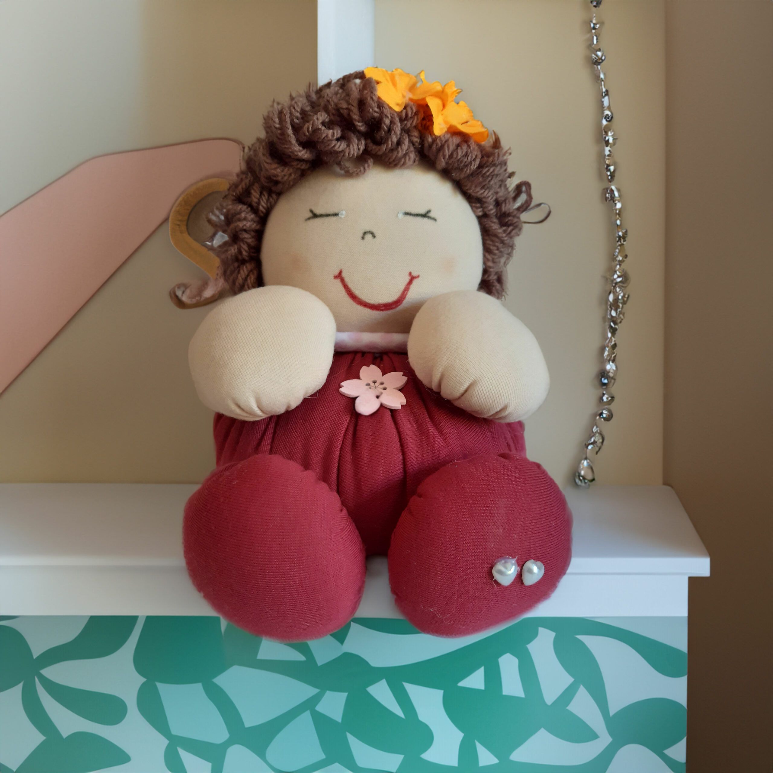 Diese zauberhafte Puppe, strahlt mit ihren strahlenden Augen pure Freude aus und schenkt jedem ein Lächeln.